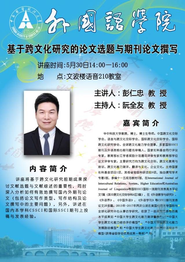 讲座预告:基于跨文化研究的论文选题与期刊论文撰写