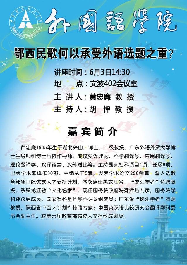 讲座预告:鄂西民歌何以承受外语选题之重?