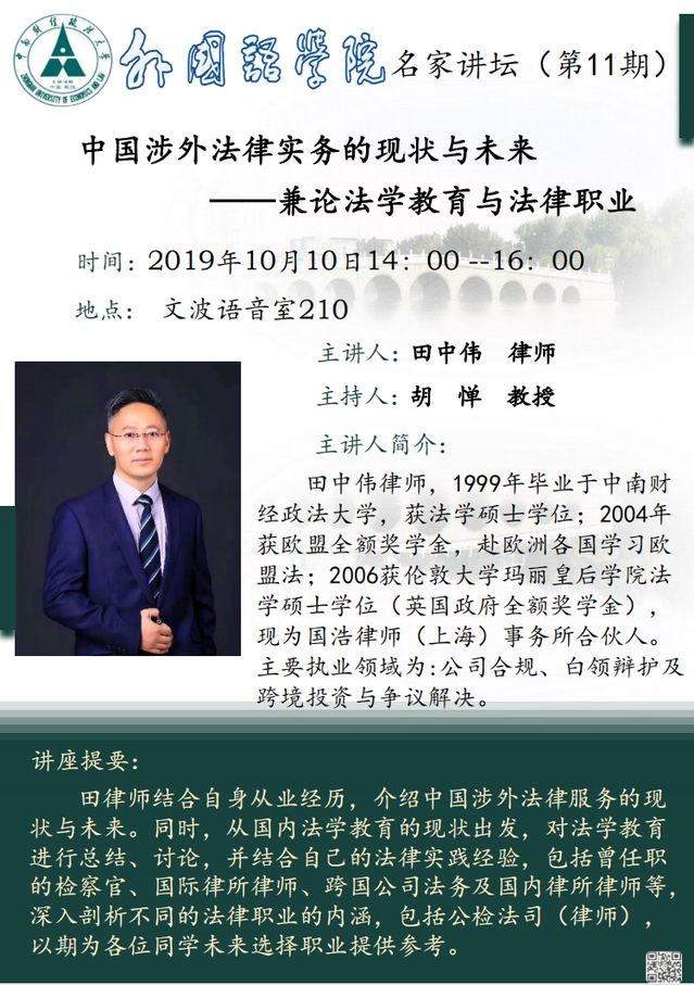 讲座预告:中国涉外法律实务的现状与未来——兼论法学教育与法律职业